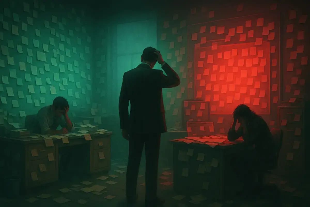 We'd stick Post-its on walls like we were trying to summon an idea by overwhelming the gods with stationery. We'd build decks so vast and intricate they could be mistaken for the schematics of a new space station. We'd rehearse presentations like actors prepping for their West End debut, only to deliver them to a room of expressionless stakeholders trained in the ancient art of studiously-not-reacting (SNR™).